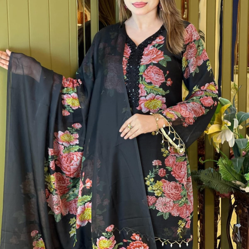 ঠিক সেরকমই এই White Gold Georgette Three Piece।