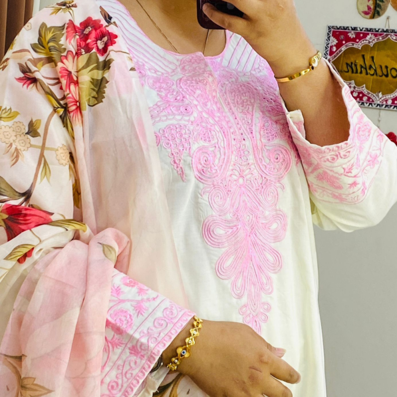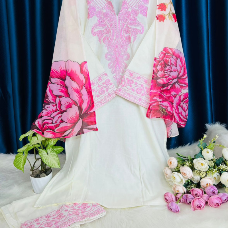 ঠিক সেই ভাবনাতেই তৈরি Semi-Stitched Georgette Embroidery Three-Piece।নরম ও হালকা Indian Weightless Georgette Fabric–এ তৈরি এই পোশাকটি গায়ে দিতেই আলাদা অনুভূতি দেয়।