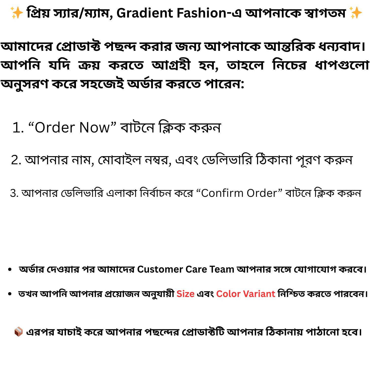 যা তোমার উপস্থিতিকে করে তোলে আরও নজরকাড়া।Inner Attached থাকায় ফিট ও আরাম—দুটোরই নিশ্চয়তা পাওয়া যায়,