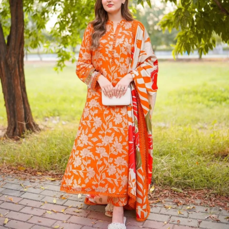 ঠিক সেই ভাবনাতেই তৈরি Digital Print Three Piece।নরম ও স্মুথ Micro Stitch Fabric–এ তৈরি Kamij ও Pant, যা গায়ে লাগতেই দেয় আরামের ছোঁয়া।