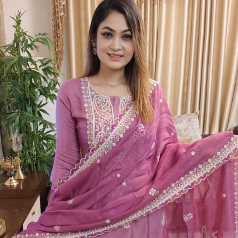 ওড়না: সিপন জর্জেট — সুন্দর এমব্রয়ডারি কাজ করা, লম্বা ৫ হাত।
