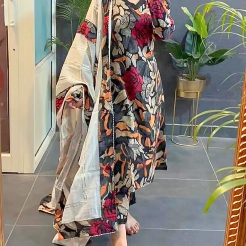 Cotton Dupatta-র নরম ছোঁয়া আর নিখুঁত সেলাইয়ের কারুকাজে যেন মিশে আছে এক টুকরো গল্প—নিজেকে ভালো লাগার, নিজের মতো করে বাঁচার গল্প।