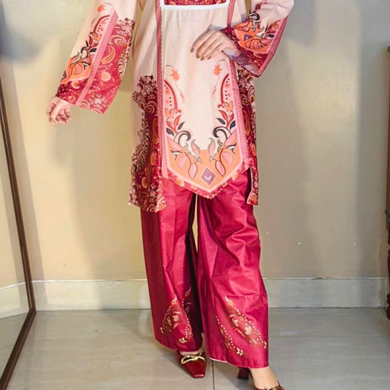 নরম Cotton Silk কাপড়ে তৈরি এই ডিজিটাল প্রিন্টেড টু-পিস