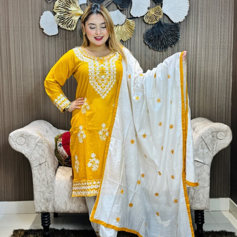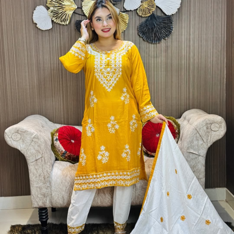 নরম VIP Cotton কাপড়ে তৈরি এই Embroidery Cotton Three Piece