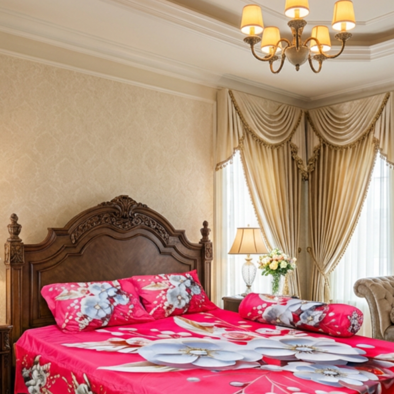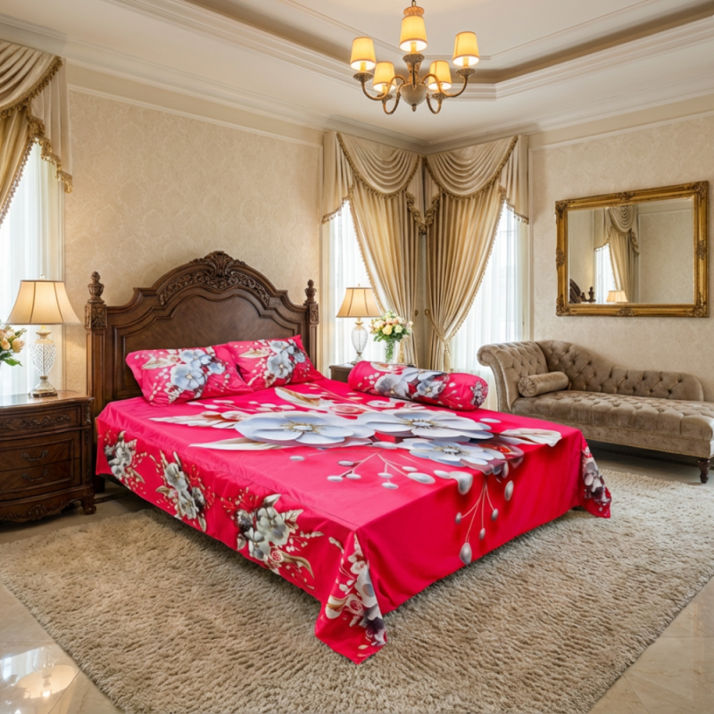 এই 4-পিস প্রিমিয়াম 3D বেডশিট সেট আপনার ঘরে আনবে রাজকীয়তা, আরাম ও স্টাইলের নিখুঁত মিশ্রণ।