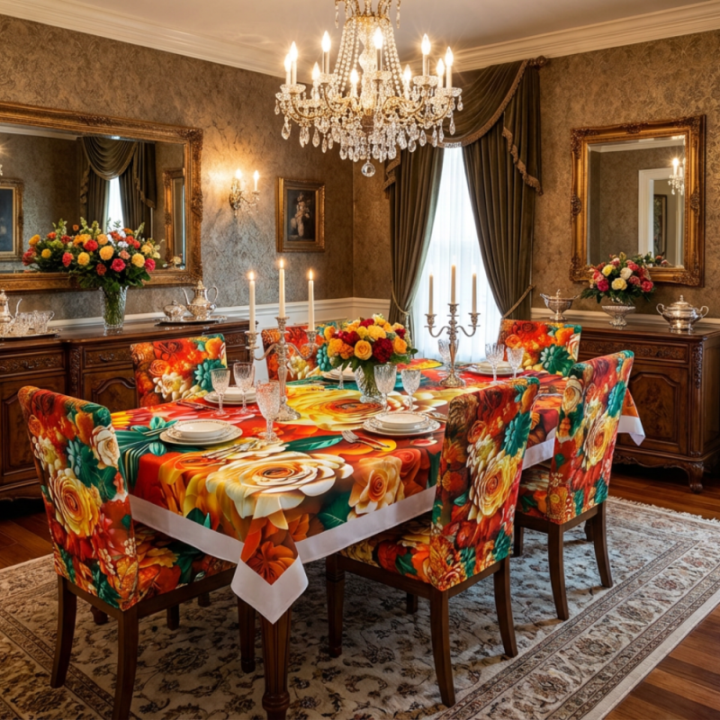 অরিজিনাল 3D ডিজাইনের ডাইনিং টেবিল ও চেয়ার কভার সেট—যা আপনার ডাইনিং এরিয়াকে দেবে নতুন এক লাক্সারিয়াস লুক।