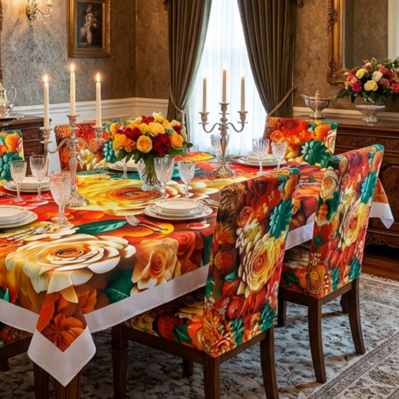 𝐎𝐫𝐢𝐠𝐢𝐧𝐚𝐥 𝟑𝐃 𝐏𝐫𝐢𝐧𝐭𝐞𝐝 𝐃𝐢𝐧𝐢𝐧𝐠 𝐂𝐡𝐚𝐢𝐫 & 𝐓𝐚𝐛𝐥𝐞 𝐂𝐨𝐯𝐞𝐫 𝐒𝐞𝐭